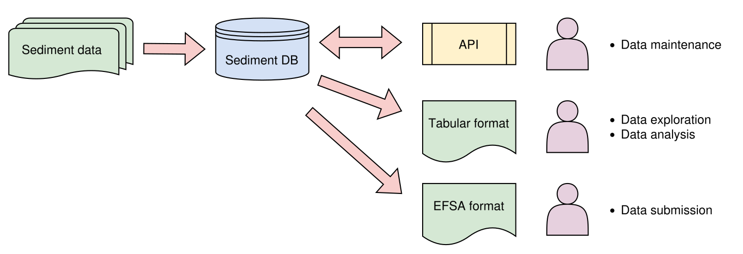 The database will be a central component of the project for identifying background sediment cores and samples. Dedicated APIs should be implemented to maintain the data with both read and write access. Exported tabular files will be used for data exploration and the main data analysis.